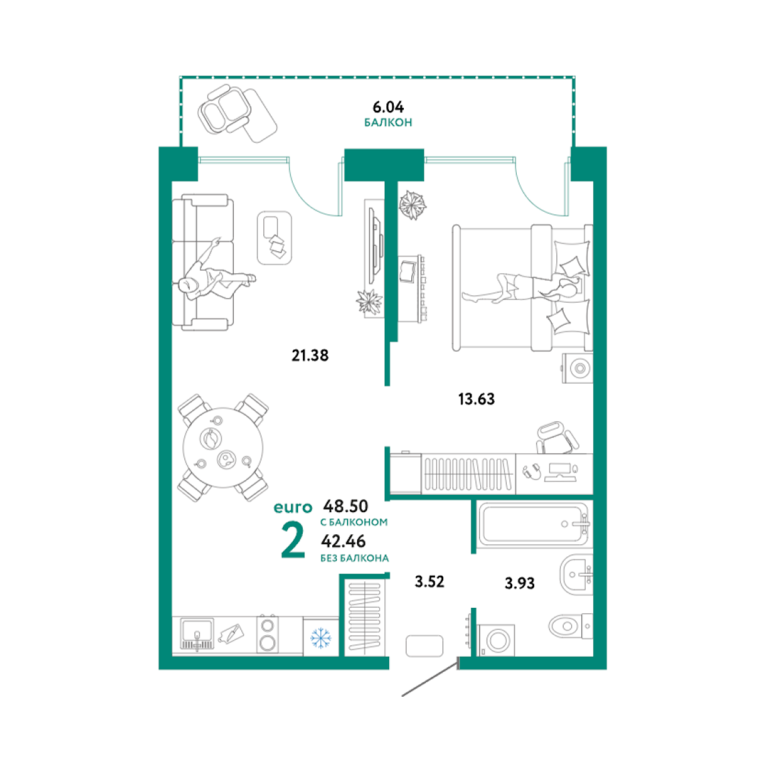 | Общая площадь: | 48.5 м2 |