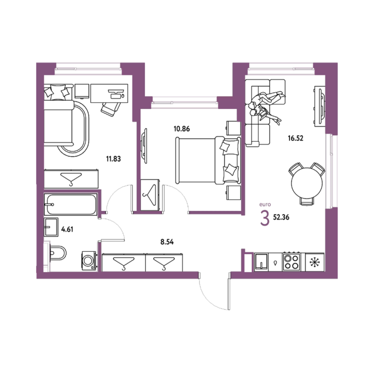 | Общая площадь: | 52.36 м2 |