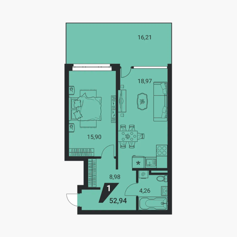 | Общая площадь: | 52.96 м2 |