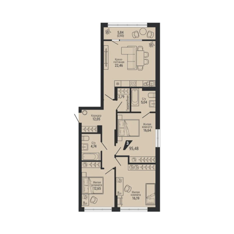 | Общая площадь: | 95.48 м2 |