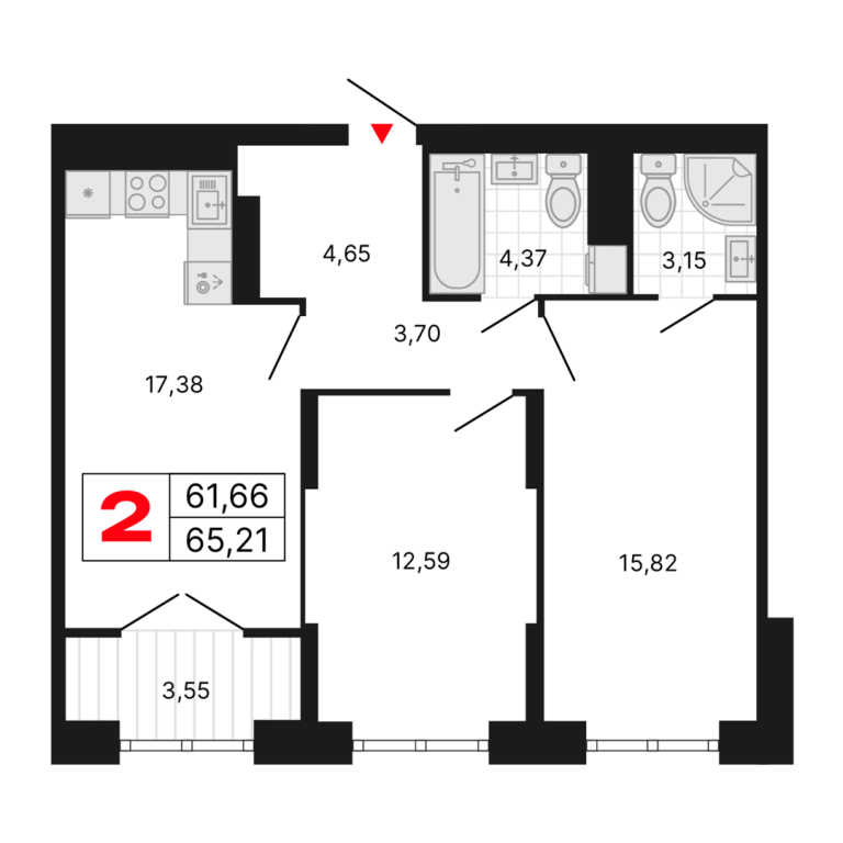 | Общая площадь: | 65.21 м2 |