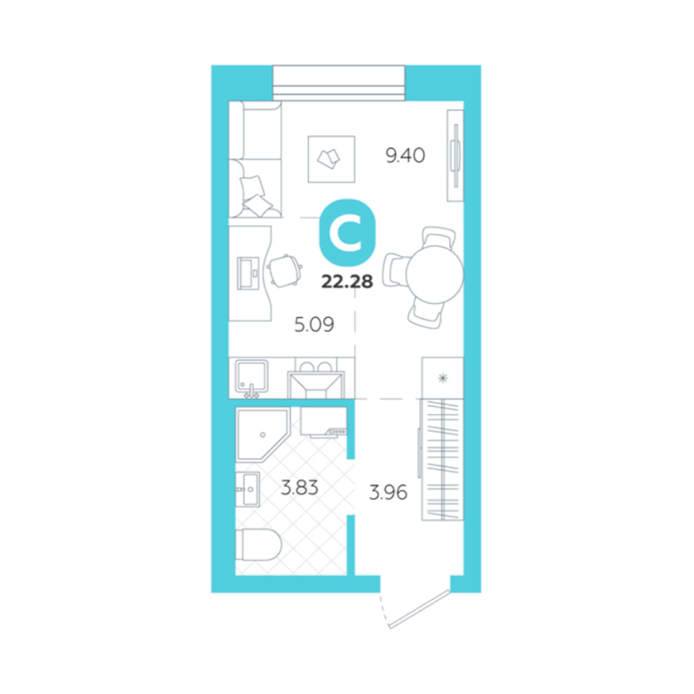 | Общая площадь: | 22.3 м2 |