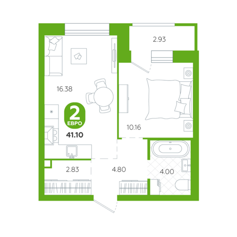| Общая площадь: | 41.1 м2 |