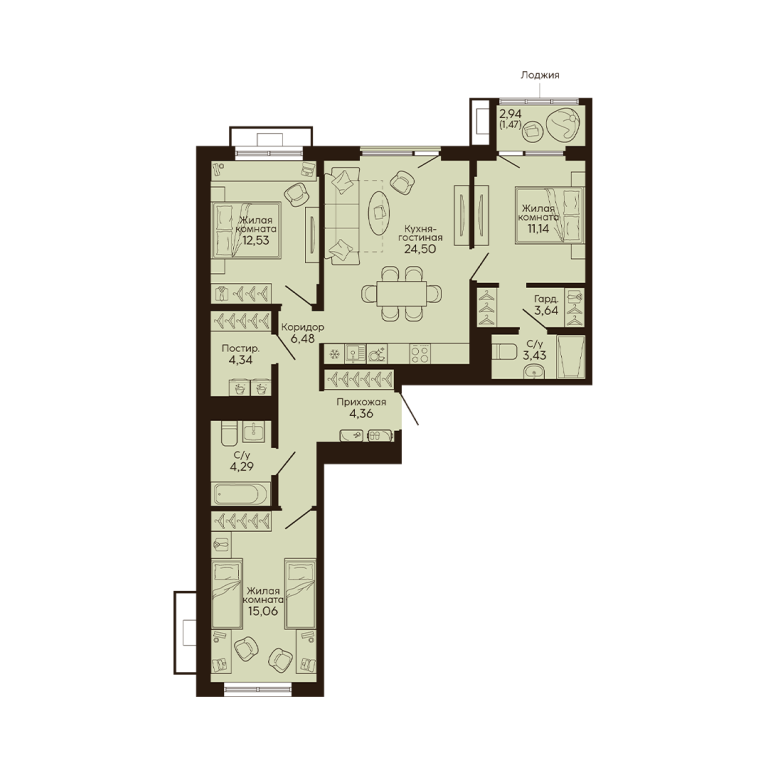 Железнодорожный р-н, Вокзальный мкр Жилой комплекс расположен в центральной части города, вблизи городского пруда и Олимпийской набережной. Местонахождение обеспечивает удобную транспортную доступность и развитую инфраструктуру. Комплекс включает дома комфорт- и бизнес-класса разной этажности, которые строятся в несколько очередей. Архитектура проекта сочетает современные решения с элементами исторического контекста. Территория благоустроена: предусмотрены пешеходный променад, рекреационные зоны, площадь для проведения мероприятий, детские игровые комплексы, зоны отдыха с шезлонгами, а также беговые и велосипедные дорожки по периметру. На территории запланированы объекты инфраструктуры: рестораны, кофейни, супермаркеты и бутики. Для жителей оборудованы подземный паркинг, коворкинг-зоны и переговорные комнаты. В квартирах предусмотрена чистовая отделка. В жилых комнатах потолки зашпаклеваны и окрашены водно-дисперсионной краской, на полу уложен ламинат 32 класса толщиной 8 мм, стены оклеены флизелиновыми обоями под покраску. В санузлах пол и часть стен отделаны керамической плиткой, установлены ванна, раковина со смесителем и инсталляция для унитаза. Потолки в санузлах также окрашены. Планировочные решения квартир разнообразны: есть варианты с гардеробными, вторым светом, панорамным остеклением и ванными комнатами с окном. |