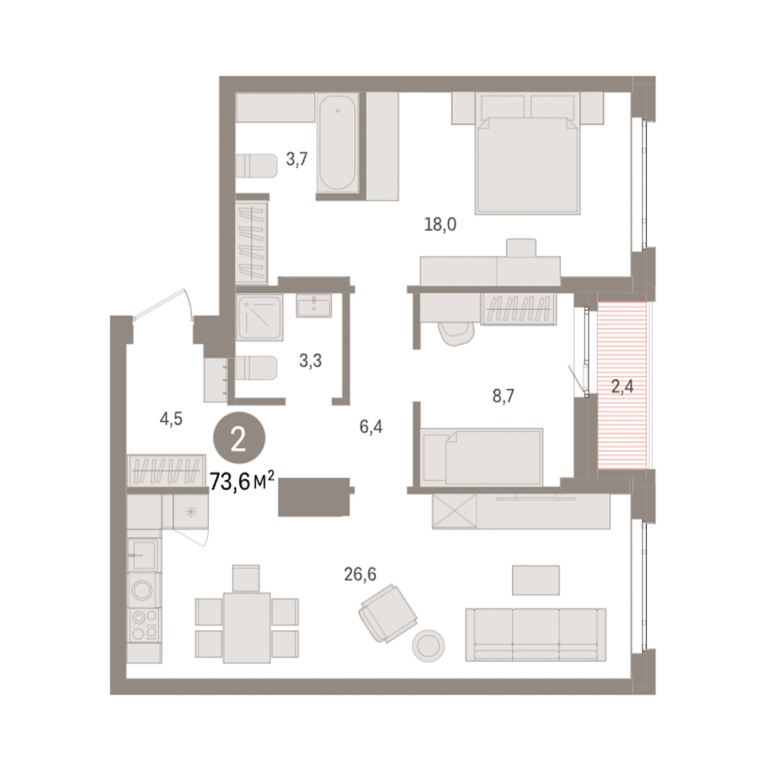 | Общая площадь: | 73.6 м2 |