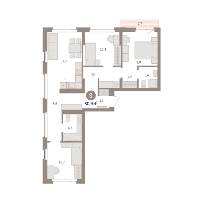 | Общая площадь: | 80.9 м2 |
