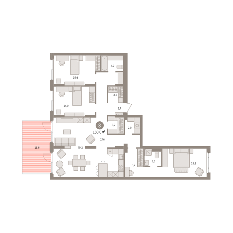 | Общая площадь: | 150.8 м2 |