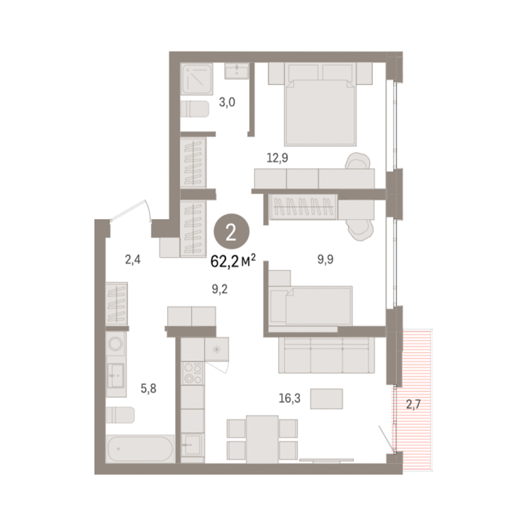 | Общая площадь: | 62.2 м2 |