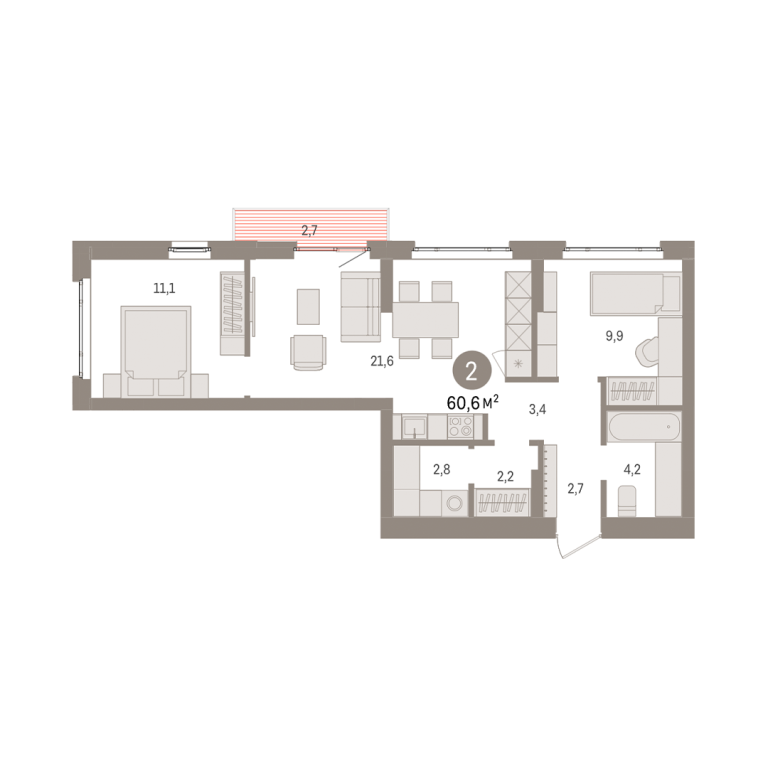 | Общая площадь: | 60.6 м2 |