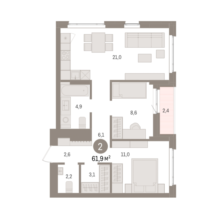 | Общая площадь: | 61.9 м2 |