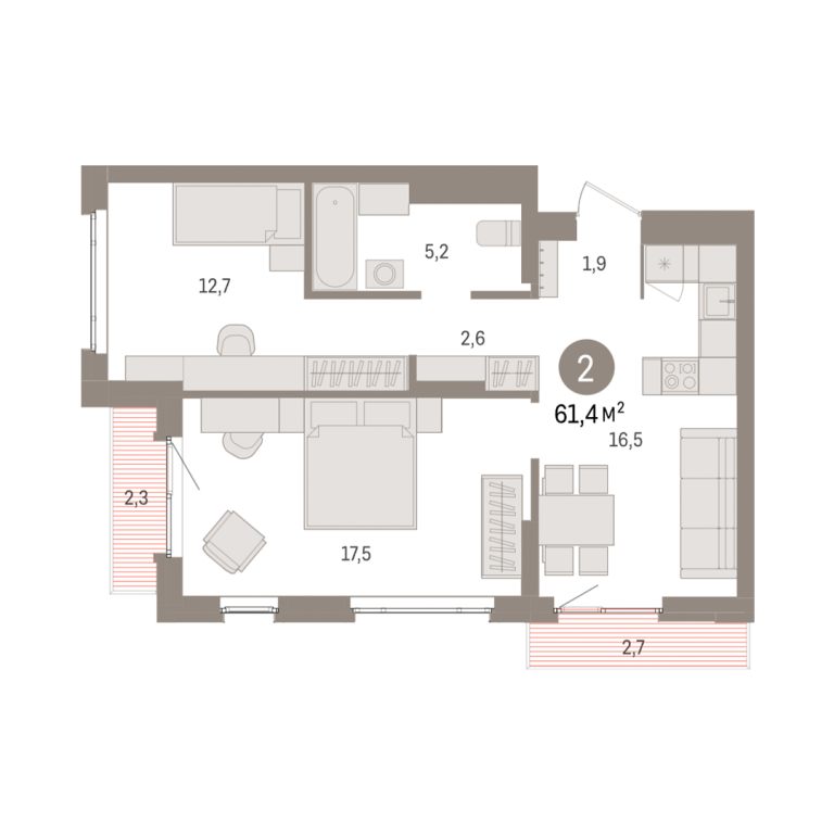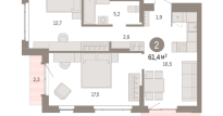 | Общая площадь: | 61.4 м2 |