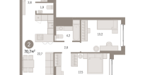 | Общая площадь: | 70.7 м2 |