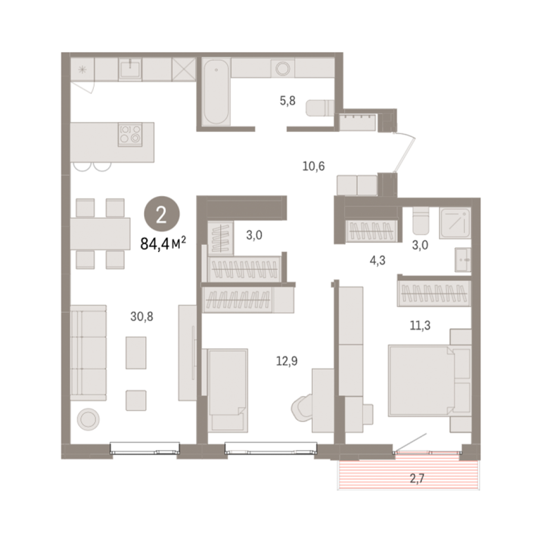 | Общая площадь: | 84.4 м2 |