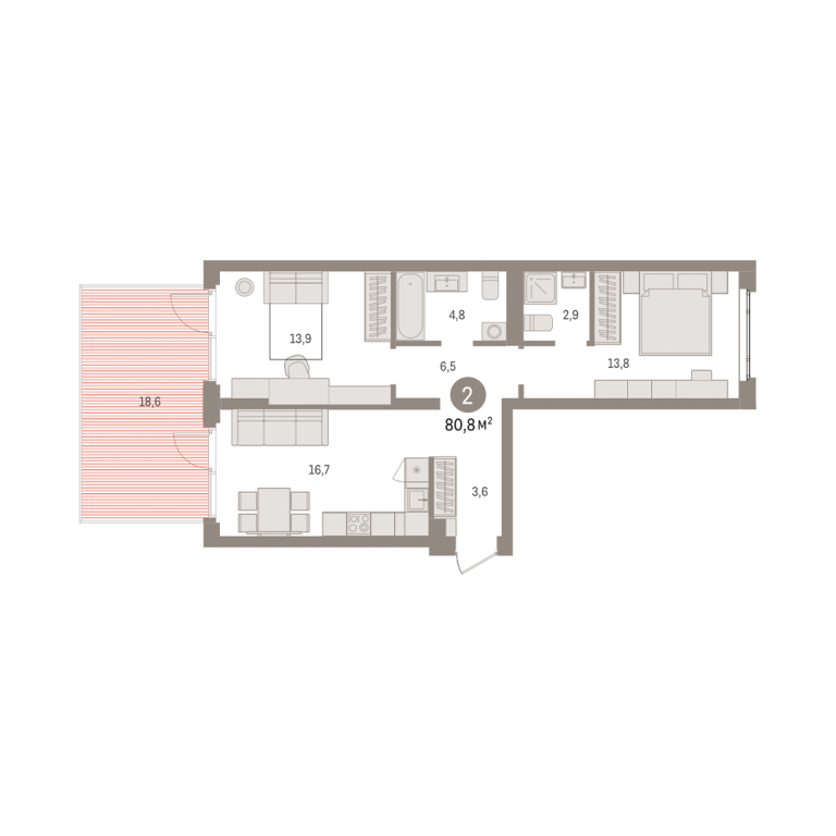 | Общая площадь: | 80.8 м2 |