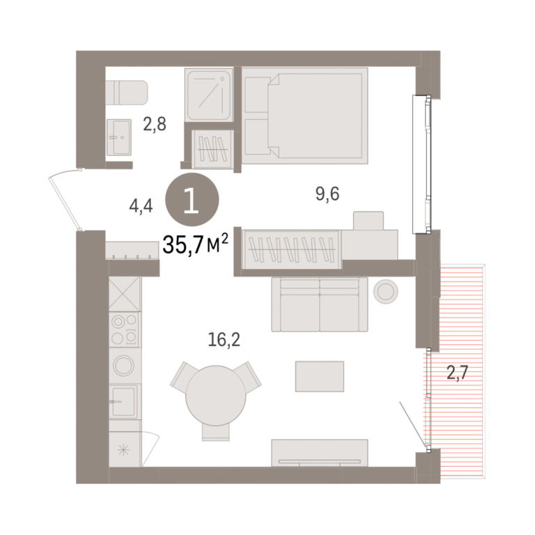 | Общая площадь: | 35.7 м2 |