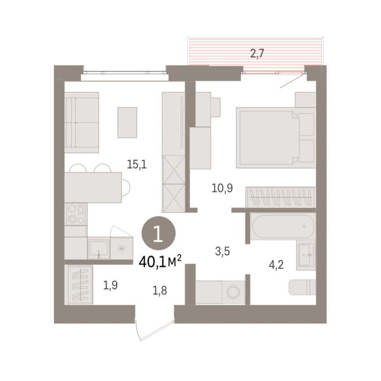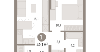 | Общая площадь: | 40.1 м2 |