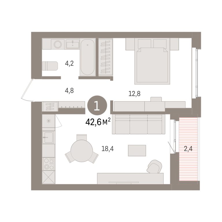 | Общая площадь: | 42.6 м2 |