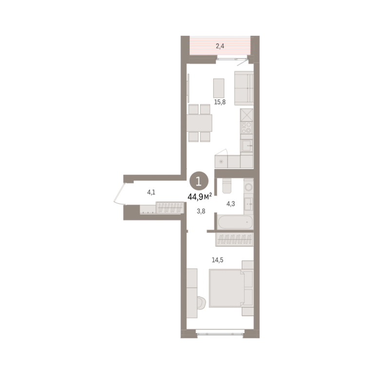 | Общая площадь: | 44.9 м2 |