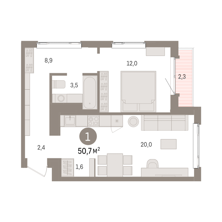| Общая площадь: | 50.7 м2 |