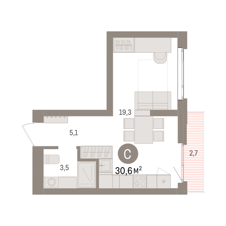 | Общая площадь: | 30.6 м2 |