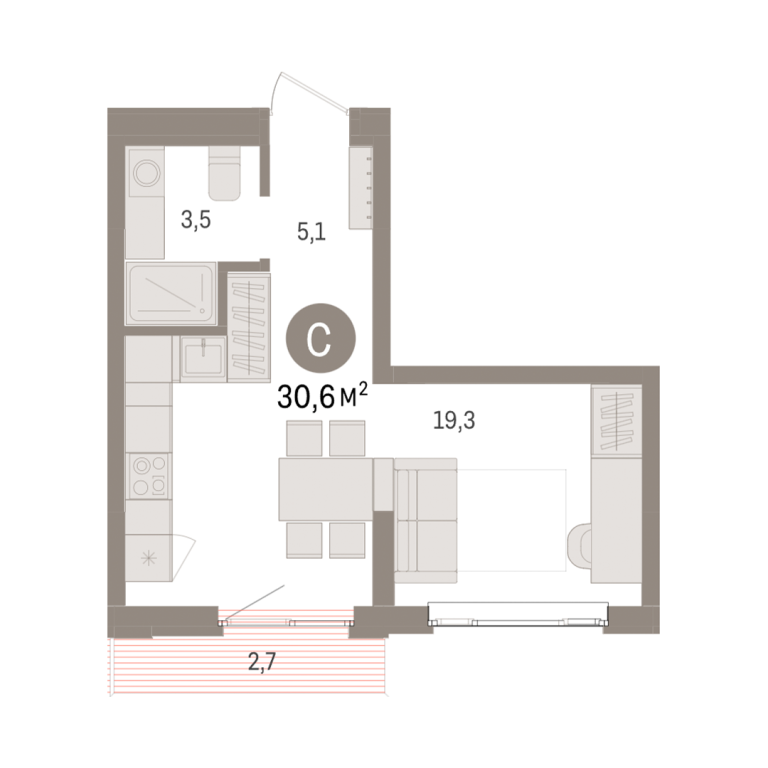 | Общая площадь: | 30.6 м2 |
