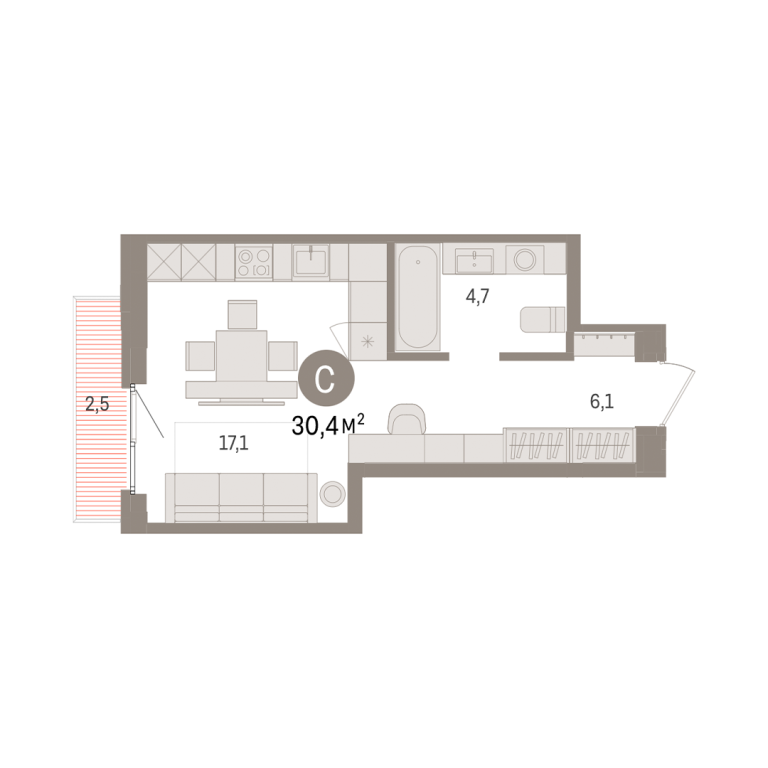 | Общая площадь: | 30.4 м2 |