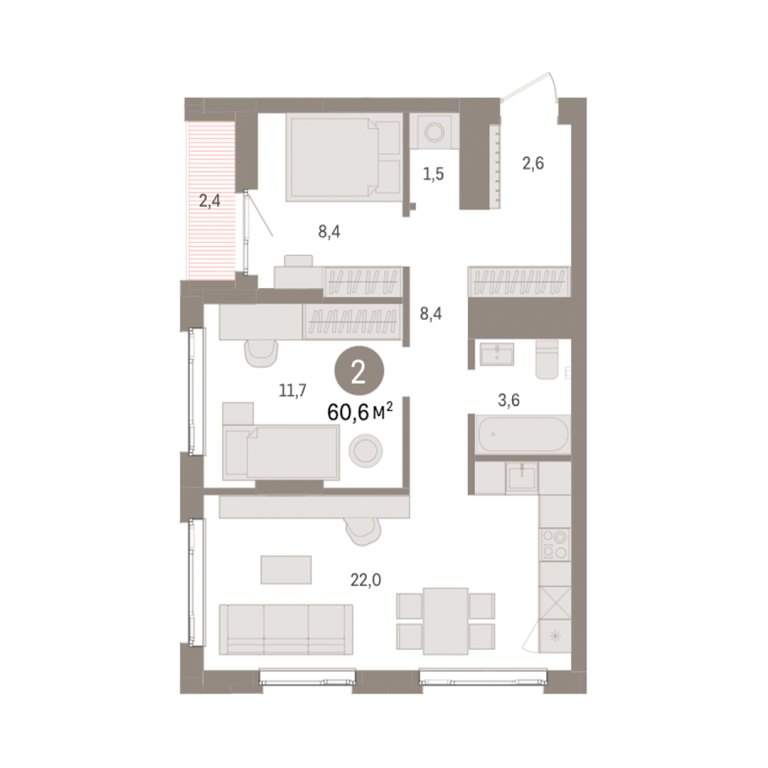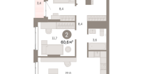 | Общая площадь: | 60.6 м2 |