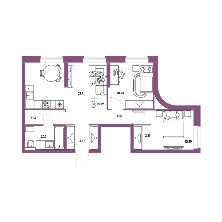 | Общая площадь: | 61.19 м2 |