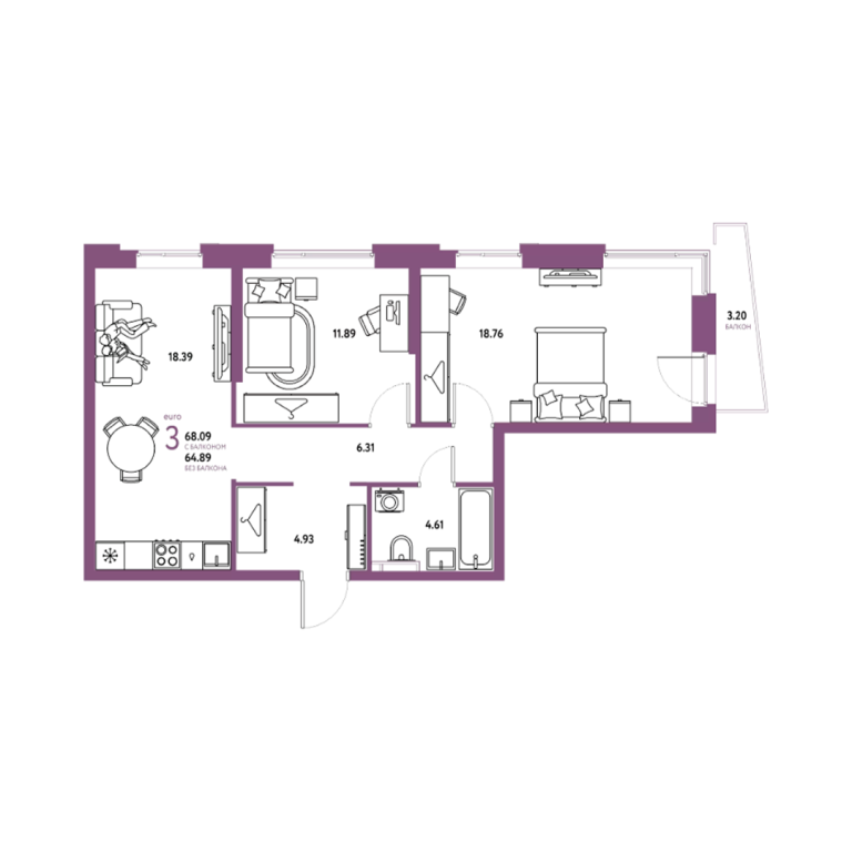 | Общая площадь: | 68.09 м2 |