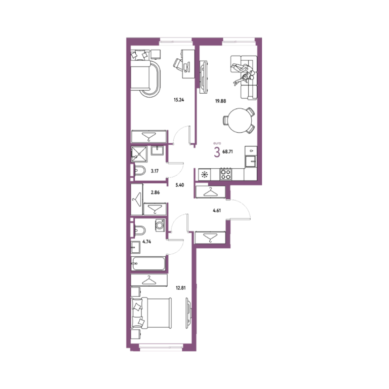 | Общая площадь: | 68.71 м2 |