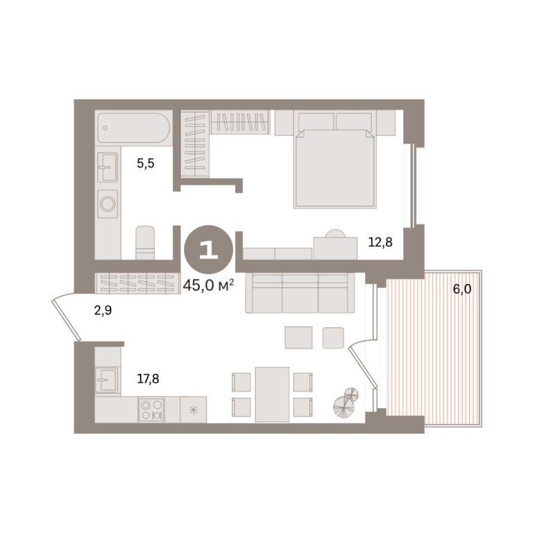 | Общая площадь: | 45 м2 |