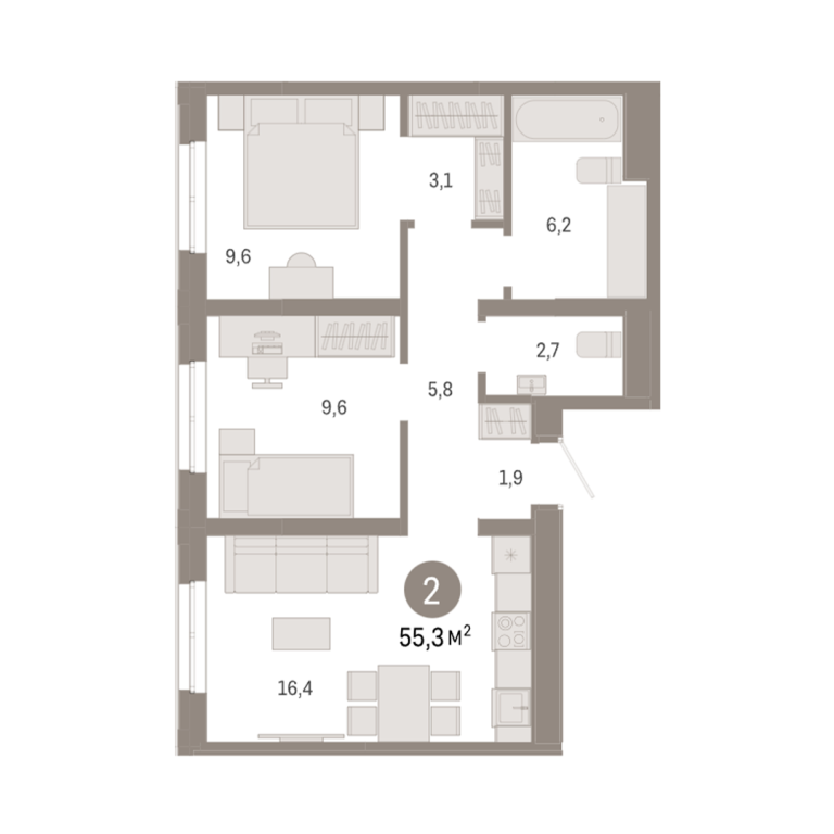 | Общая площадь: | 55.3 м2 |