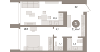 | Общая площадь: | 51.6 м2 |