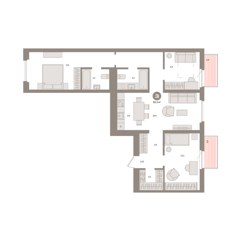 | Общая площадь: | 95.3 м2 |