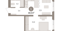 | Общая площадь: | 40.5 м2 |