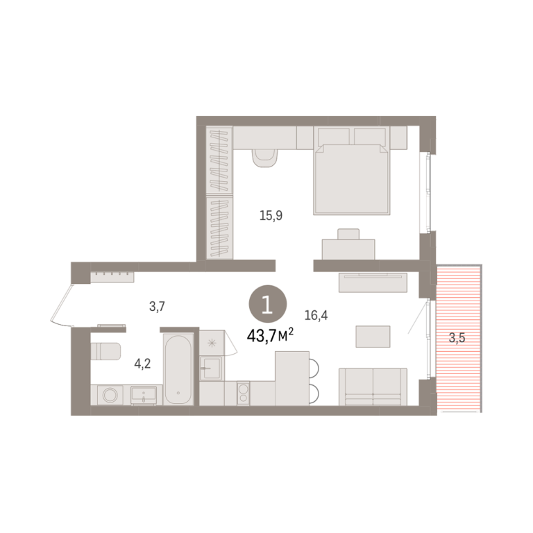 | Общая площадь: | 43.7 м2 |