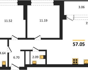 • Площадь 57.05 м2