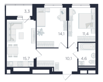 - 56.9 м2