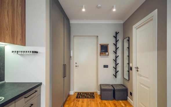 Еще один момент связан со стиральной машиной. При планировании места в квартире часто возникает вопрос, куда ее размещать. Особенно это актуально, если мало места в санузле или нет отдельного хозяйственного блока. «Есть несколько вариантов: разместить ее под раковиной в санузле для экономии пространства, скрыть за дверцей шкафа на кухне или в прихожей. Чаще всего кухни и санузлы в квартирах не самые просторные помещения, поэтому размещение в прихожей становится самым оптимальным решением», — подытожила Надежда Ежова.