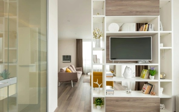 - Размер. Флагманской считается диагональ 55 дюймов. Такие телевизоры подходят как для гостиной, так и спальни или кухни. Техника от 75 дюймов большая и ей понадобится много места — на стене или специальной тумбе. Телевизоры диагональю 32 и 40 дюймов легче всего разместить в тесных пространствах, например, на кухне. Чтобы не ошибиться с выбором, заранее измерьте стену рулеткой и оцените, насколько органично на ней будет смотреться телевизор того или ионго размера.