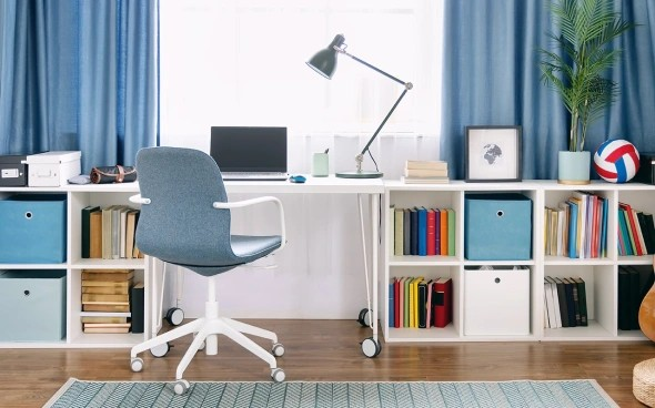 «Важно позаботиться, чтобы яркие солнечные лучи не мешали сосредоточиться — установить шторы плиссе (жалюзи) или рулонные. От игровой, спальной зоны рабочее место можно отделить легкой ширмой, например из рисовой бумаги, текстильными шторами, стеллажом с книгами, специальной гипсокартонной конструкцией или шведской стенкой», — советует дизайнер.