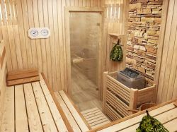 Для отделки и обустройства рекомендуется выбирать экологичные материалы. Особенно для парной. Её чаще всего отделывают деревом. Можно использовать разные породы, бюджетный вариант — липа, осина. Для обеспечения долговечности древесины важно обработать её максимально безопасными материалами. Например, для парной подходит тунговое масло.